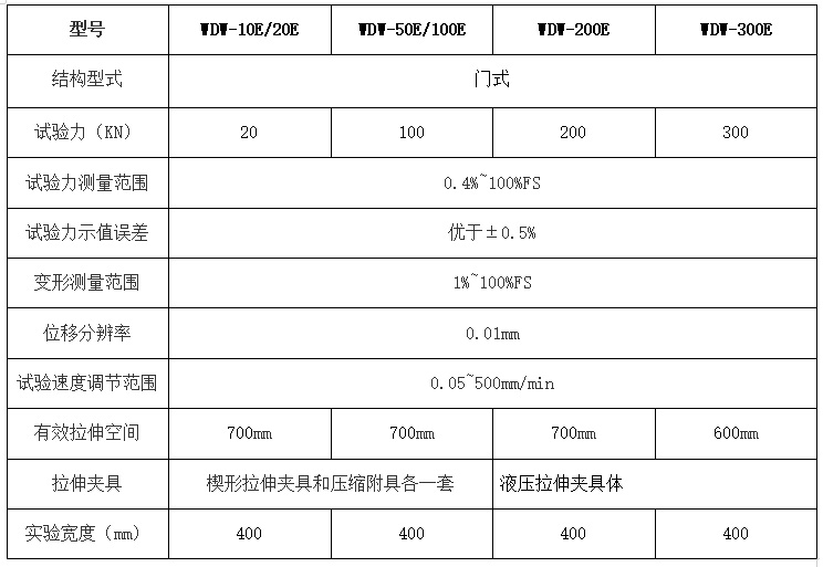 采用导向光杠固定上横梁及工作台面构成机架结构,由滚珠丝杠驱动中横梁上下移动来传递负荷,具有结构合理、稳定性好、加载平稳等特点。