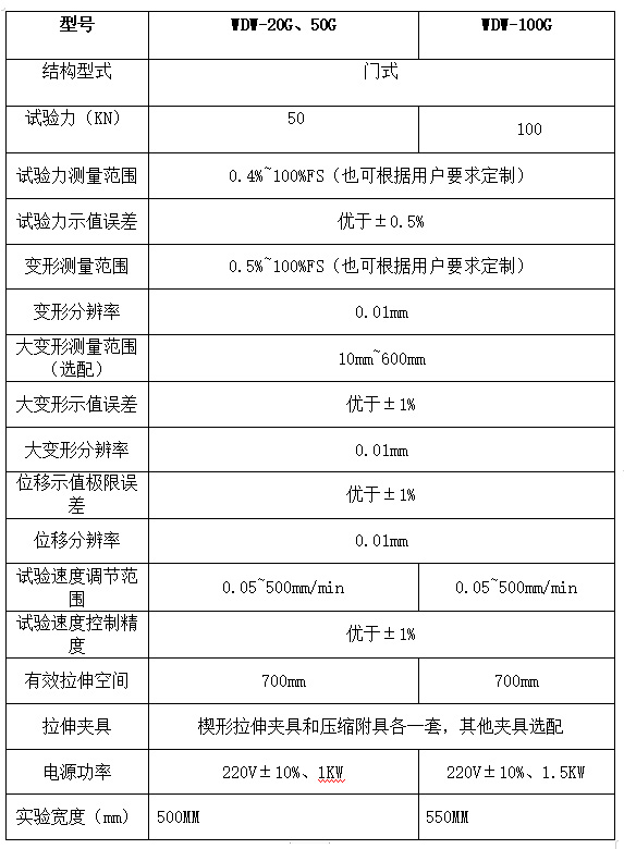 采用导向光杠固定上横梁及工作台面构成机架结构,由滚珠丝杠驱动中横梁上下移动来传递负荷,具有结构合理、稳定性好、加载平稳等特点。